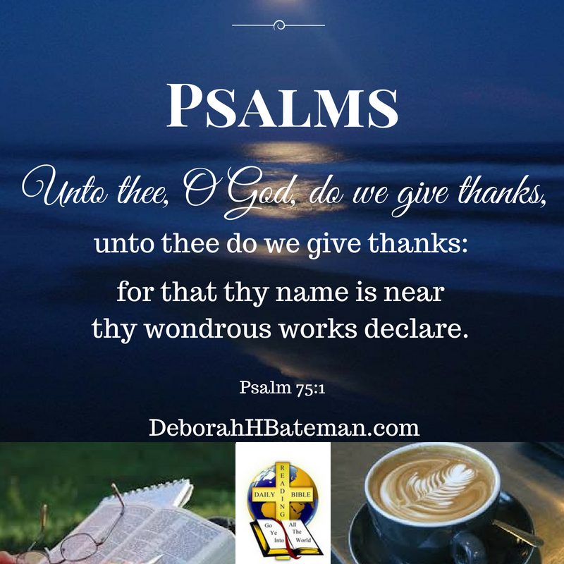 Today’s Daily Bible Reading is from Psalm 75:1-10. Psalm 75 is a Psalm of Asaph. It is a song to the director of music, to the tune of “Do Not Destroy.” Asaph gives thanks to God for His name and His wondrous works. This Psalm is thought to possibly be a speech that was made when David was appointed governor and was then penned by Asaph.