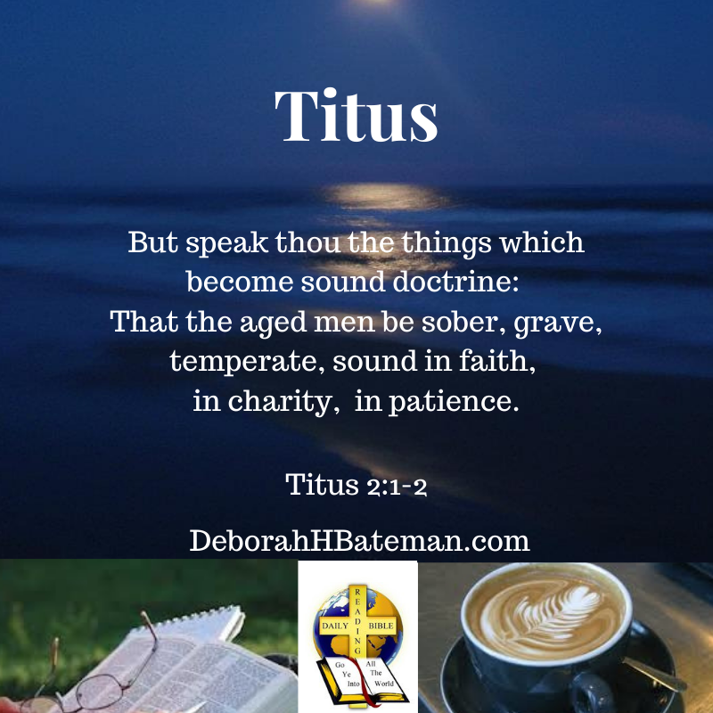 Thank You for this Scripture in the book of Titus. Paul exhorts Titus to teach the people how they should act. Help us to use the guidelines as an example for ourselves. Even though we are covered under the blood of Jesus, help us to strive to live godly lives. In Jesus’ name, we pray. Amen.