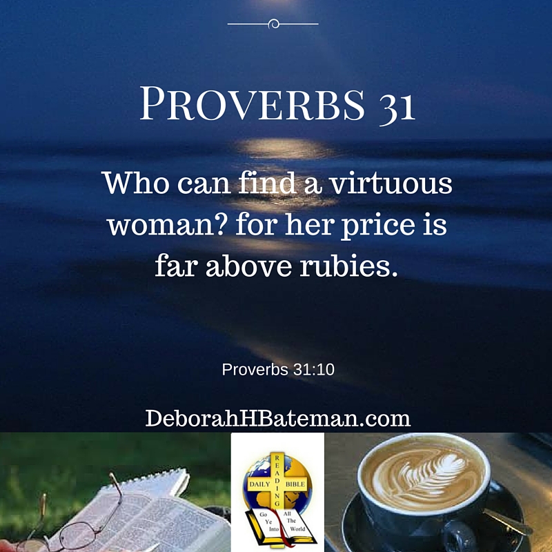 Proverbs 31: Who Can Find a Virtuous Woman is a Daily Bible Reading Study of Proverbs 31 by Deborah H. Bateman. Proverbs 31 is thought to be a letter from Bathsheba to King Solomon, who is called King Lemuel in this Scripture.